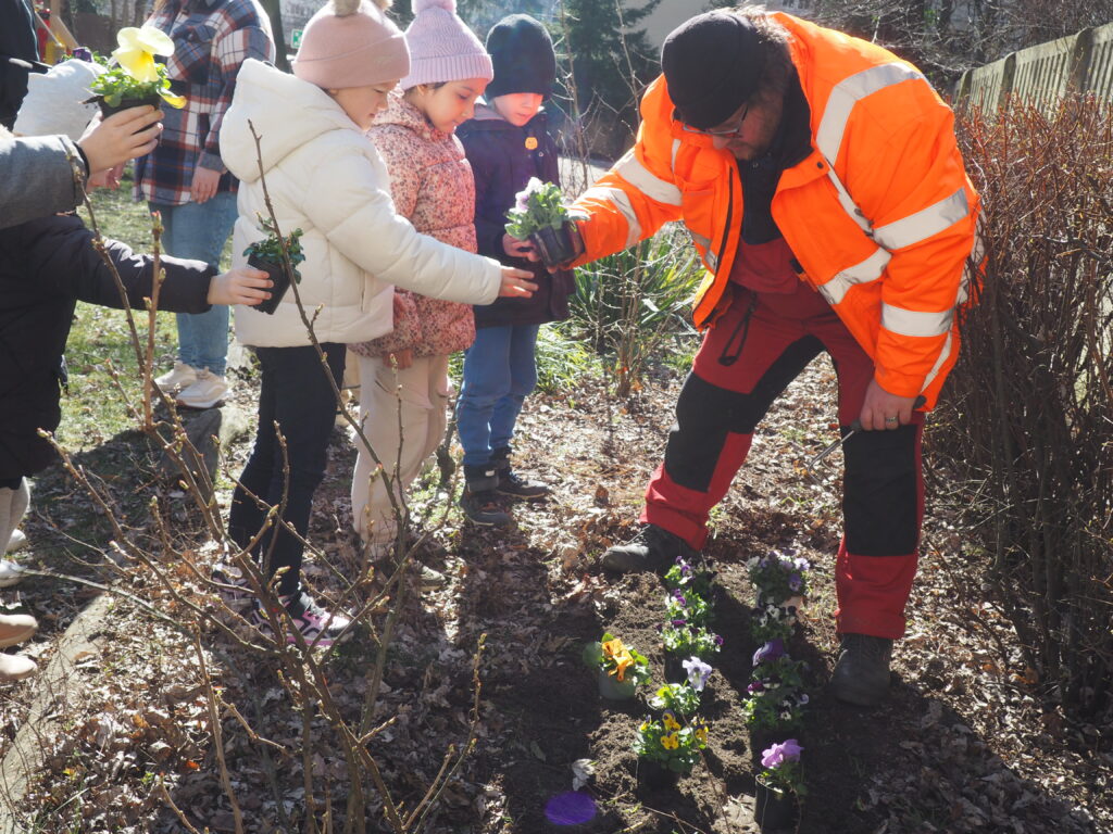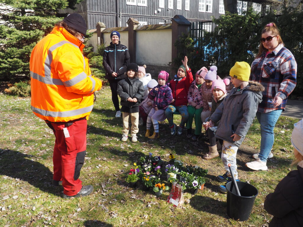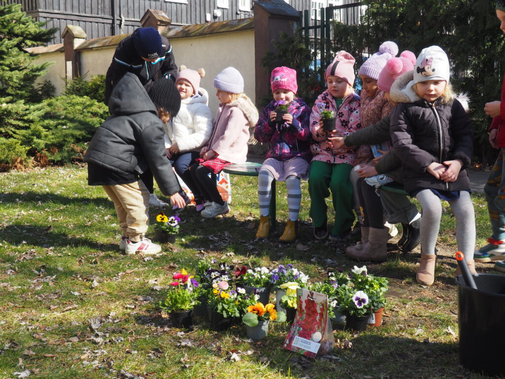 Sadzenie kwiatków w ogrodzie oraz spotkanie z ogrodnikiem przedszkolnym
